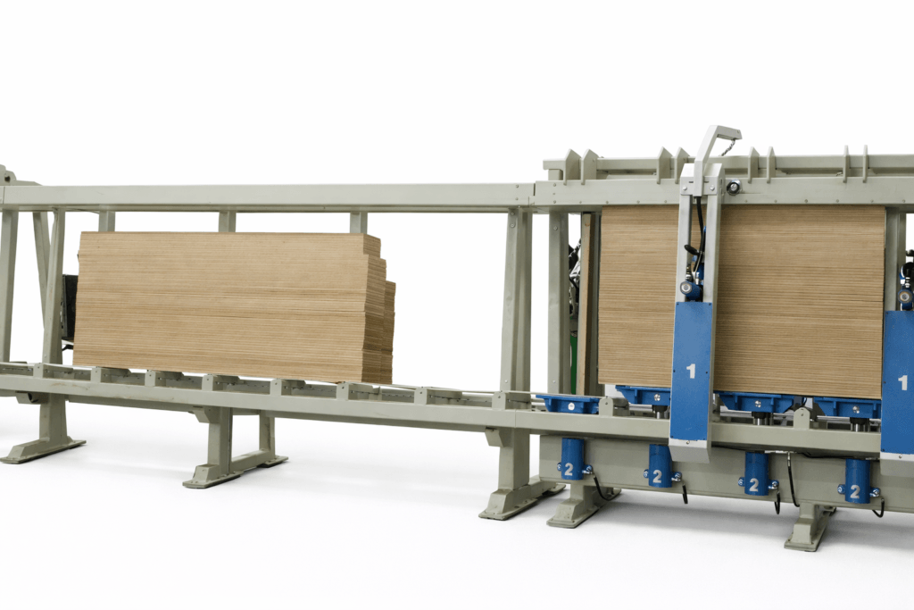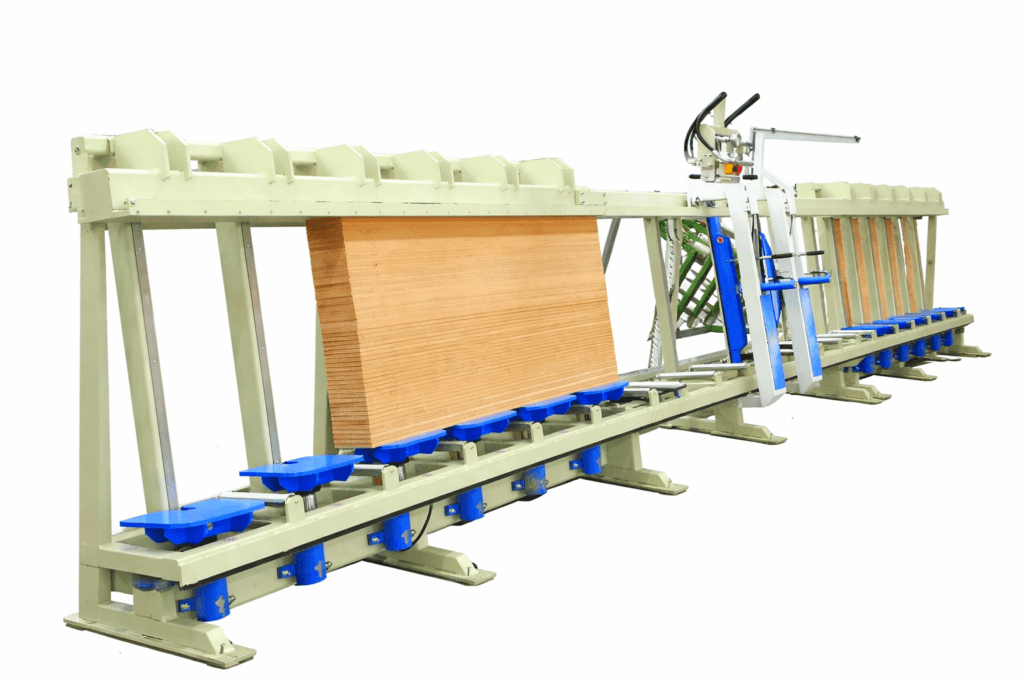 Stiskalnica je namenjena za hladno debelinsko lepljenje strešnih nosilcev, parketa pri naravnem sušenju lesa. Stiskanje je izvedeno s hidravličnimi cilindri. Nosilci hidravličnih cilindrov so fiksni. Pritisni cilindri so s spodnje strani in med cilindri so negnani valji kateri služijo za transport zložaja iz in v stiskalnico. Zgornji prislon je fiksen in v enem kosu. Poravnavanje je izvedeno s poravnalnimi vozički, kateri ima vsak po en hidravlični cilinder. Vozičke ročno premikamo po delovni dolžini. Krmiljenje je izvedeno z ročnimi hidravličnimi ventili. Parkirni prostor je na sredini stiskalnice z negnanimi valji, kjer se pripravlja zložaj za lepljenje. Stiskalnica je sestavljena iz treh delov, na sredini parkirni prostor ter levo in desno od njega stiskalnici.